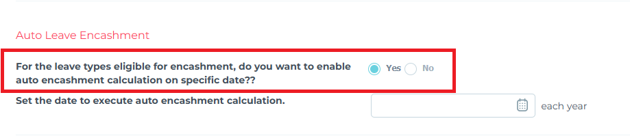Set the date to execute auto encashment calculation for each year.